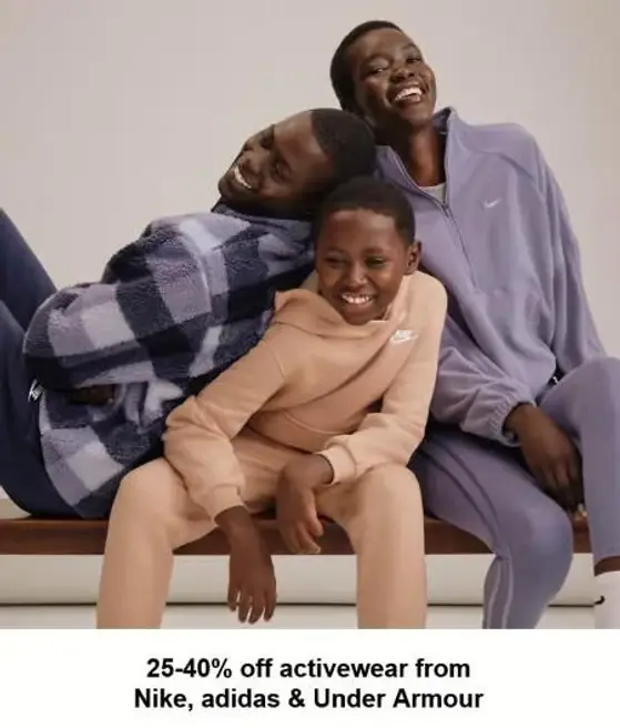 Hurry! Shop in store and get 25-40% off activewear from Nike, adidas & Under Armour.