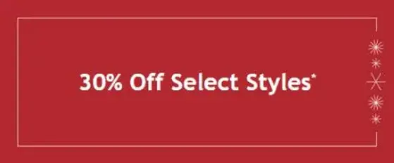 Hurry in and save! Shop in store and take 30% off on select styles.